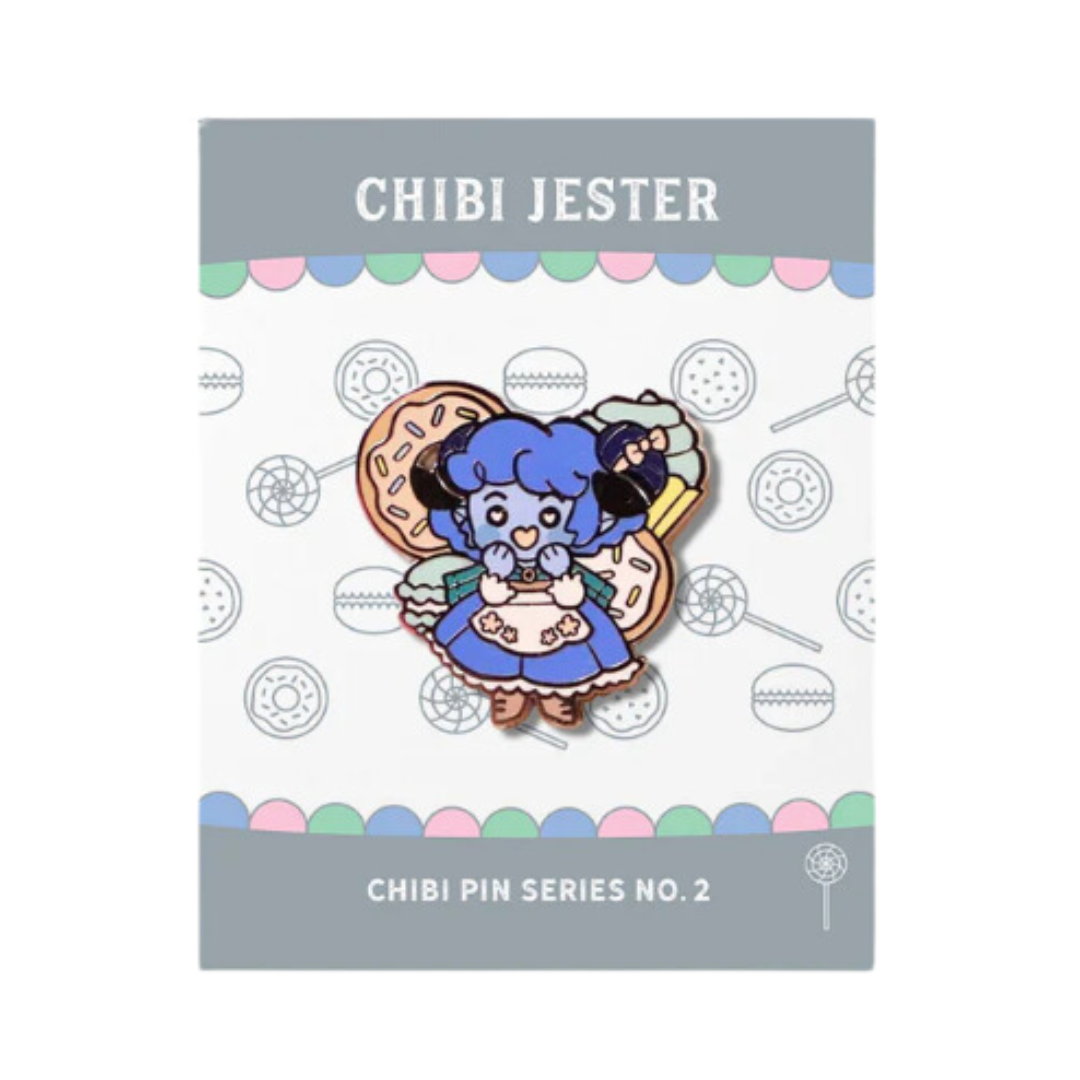 Satisfy your sweet tooth with our very shiny, donuty, sprinkly, enamely, chibi Jester Lavorre pin designed by Critter Jenny Park (@asunnydisposish).