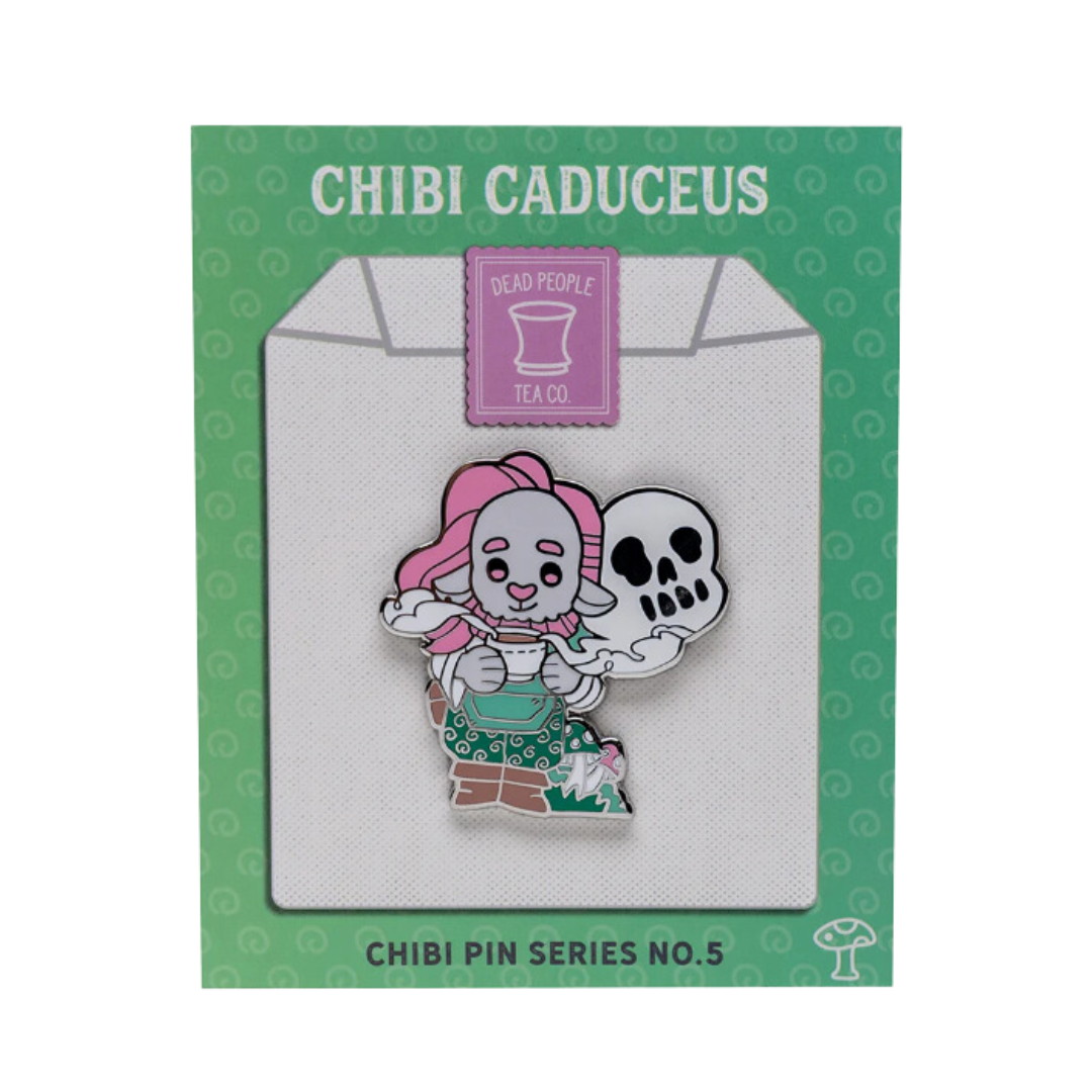 Our chibi Caduceus Clay pin was designed by Critter Jenny Park (@asunnydisposish) and features bad ass skull-shaped tea steam and the most adorable shrooms. And the best part? This pin is 100% approved by the Wildmother.