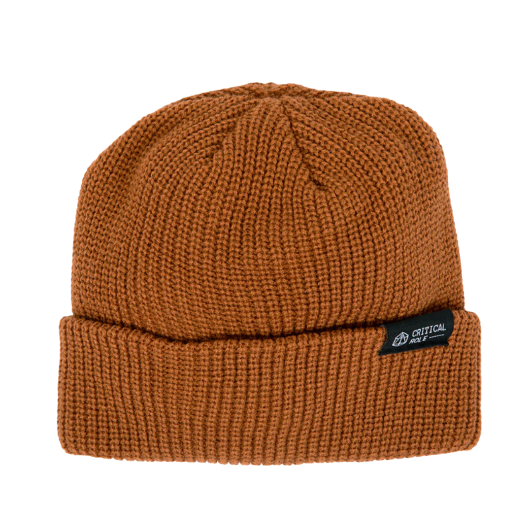 Whether you’re battling cold weather, having a messy hair day, or just need to add a pop of color to your fit, this rib knit beanie is the accessory you didn’t know you needed. From the rust brown color to the small, woven Critical Role label–everything about this beanie is stylishly subtle.