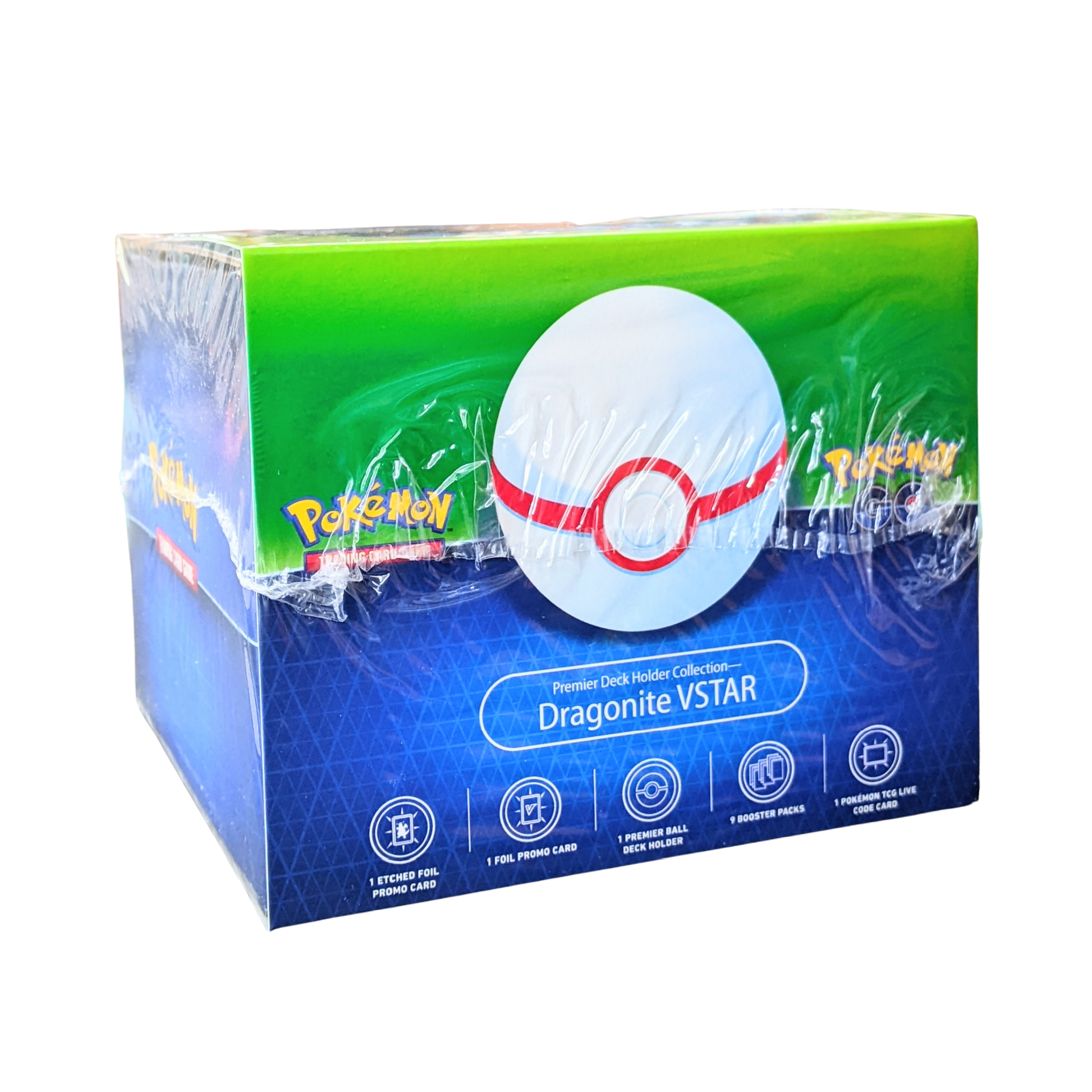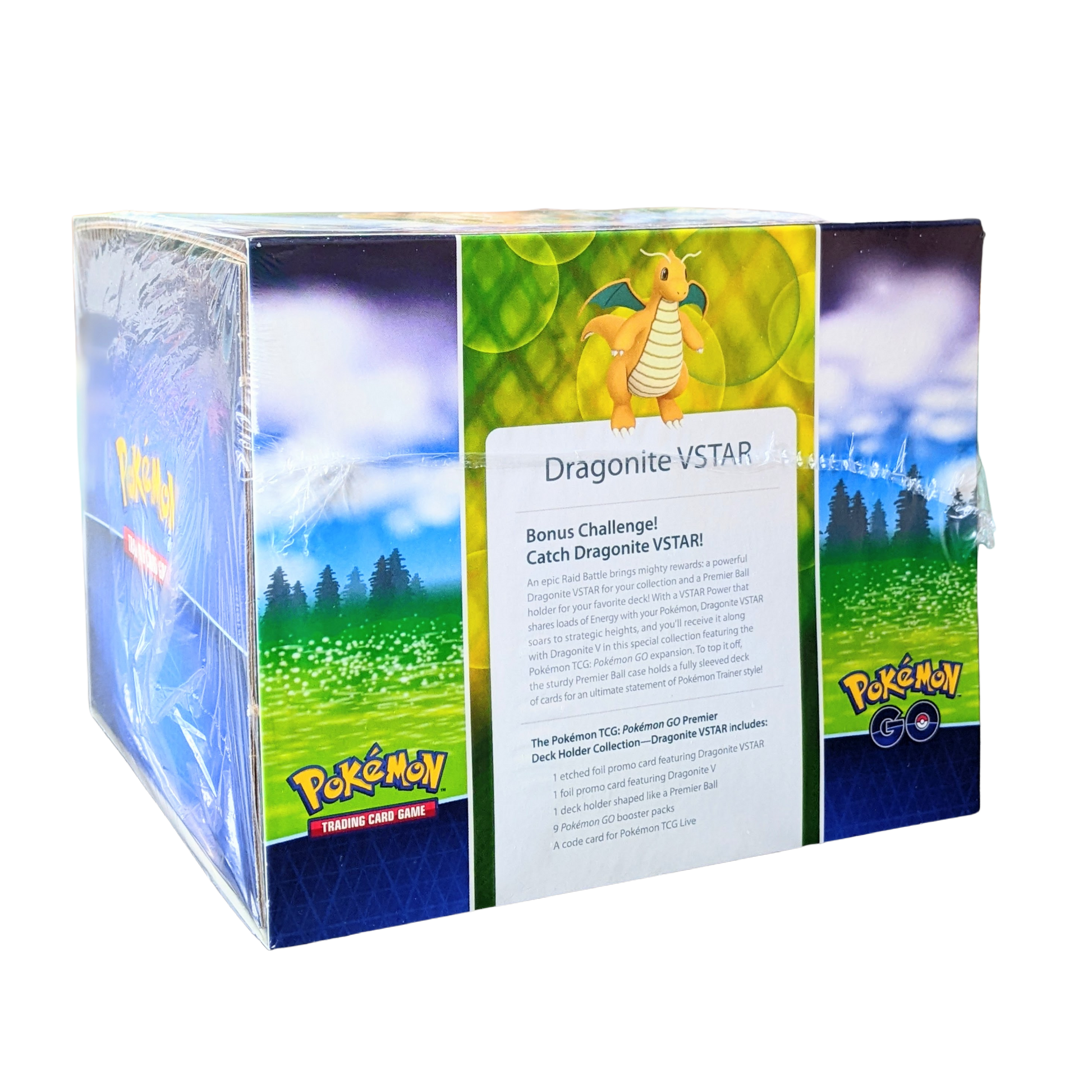 The Pokémon TCG: Pokémon Go Premier Deck Holder Collection Dragonite VSTAR includes: