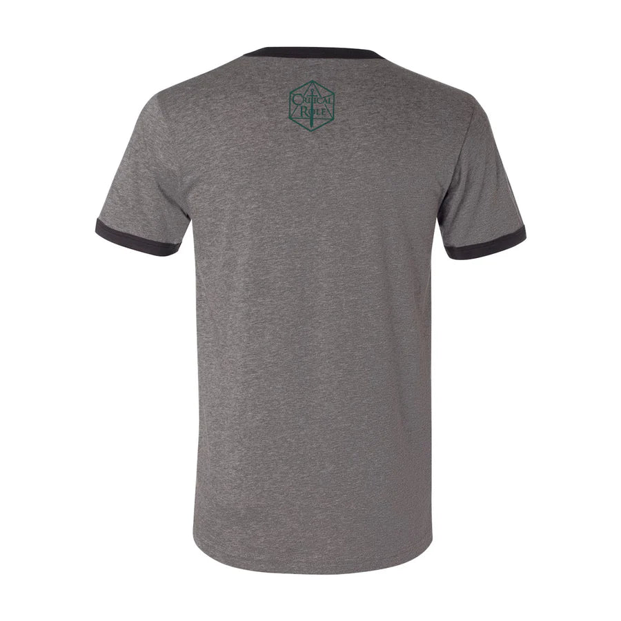 Celebrate where the bright become brave with the Wildemount Wildlings camp tee! The short sleeve ringer tee features a fun, retro graphic sentiment of Veth Brenatto’s young adventurer’s camp on the front and the Critical Role logo on the back. This release commemorates The Mighty Nein Reunited one-shot!